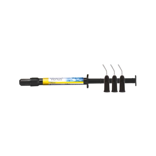 Venus flow is een optimale aanvulling op Venus in alle klinische situaties waarin precieze adaptatie aan een element alleen mogelijk is door gebruik van een vloeibaar materiaal. Door haar thixotrope eigenschappen vloeit Venus flow alleen als het wordt gemanipuleerd met een instrument. Zo is de consistentie altijd controleerbaar. Venus flow kan afzonderlijk worden gebruikt of in combinatie met Venus waarmee het natuurlijke effect van Venus onderstreept wordt. Dit vloeibare composiet is verkrijgbaar in 14 kleuren die exact zijn afgestemd op de kleuren van Venus.